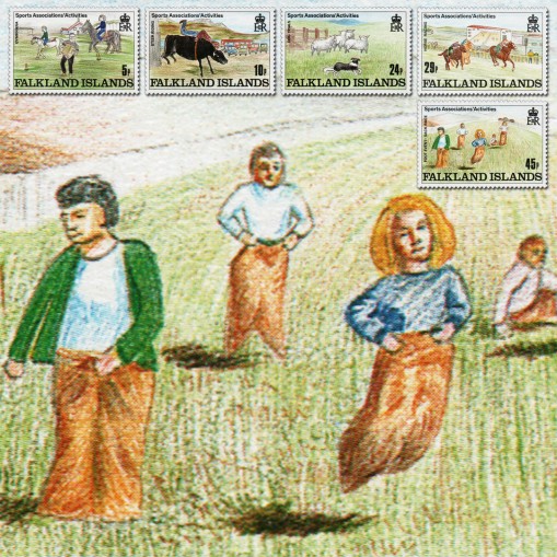 Krótka seria, na znaczkach której widnieją rysunki dzieci przedstawiające zawody sportowe organizowane przez towarzystwa sportowe na Falklandach, kolejno: