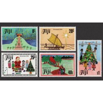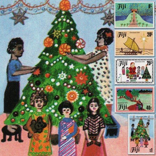 Na znaczkach widnieją rysunki dzieci przedstawiające kolejno: stajenkę betlejemską, tradycyjną łódź polinezyjska, świętego Mikołaja i choinkę, drogę do kościoła oraz ubieranie choinki.