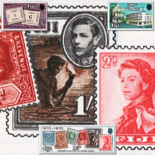 Na walorach przedstawiono znaczki z 1870 roku, znaczki z popiersiami różnych brytyjskich monarchów oraz budynek głównego urzędu pocztowego w Suva w 1870 roku i w 1970 roku.