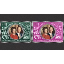 Na walorach przedstawiono portrety pary królewskiej obok muszli ślimaka morskiego i zęba wieloryba - artefaktów charakterystycznych dla wysp fidżyjskich.