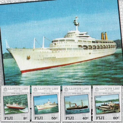Znaczki upamiętniające 25-lecie gazety „Lloyd’s List”.