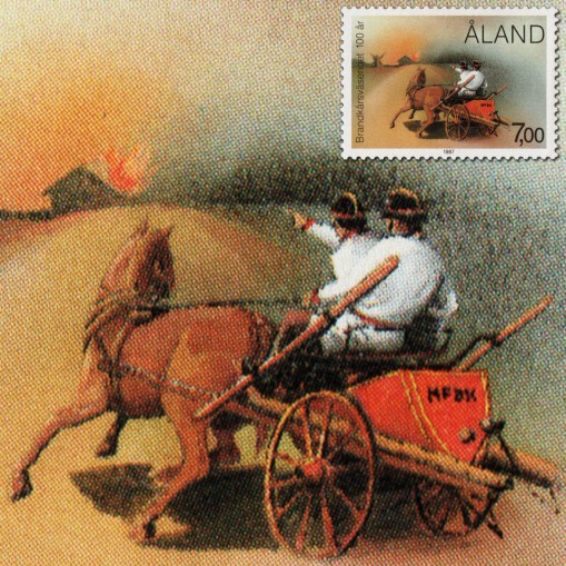 Znaczek upamiętniający stulecie straży pożarnej na Aland.