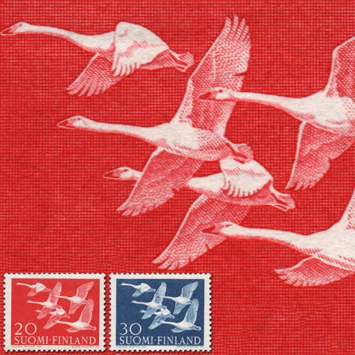 Na znaczkach widnieją łabędzie krzykliwe w locie.