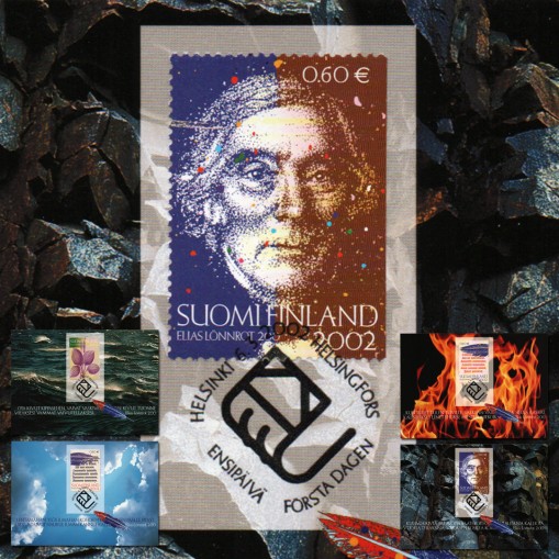 Seria na kartach maksimum upamiętniająca dwusetną rocznicę urodzin Eliasa Lönnrota, fińskiego poety, lekarza i lingwisty, autora „Kalevali”, czyli zbioru dawnych pieśni fińskich.