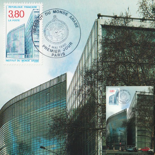 Znaczek na karcie maksimum, na którym widnieje budynek Instytutu Świata Arabskiego w Paryżu. Instytut ten założono w 1980 roku w celu badania i upowszechniania wiedzy o kulturze i religii krajów arabskich we Francji. W budynku znajdują się m.in. muzeum, biblioteka, audytorium i restauracja.