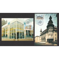 Znaczki na kartach maksimum z emisji EUROPA CEPT z 1990 roku, której tematem były budynki poczty.
