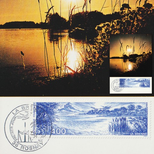 Na znaczku i karcie widnieje jezioro w parku krajobrazowym rejonu Brenne (fr. parc naturel régional de la Brenne) w centralnej Francji.