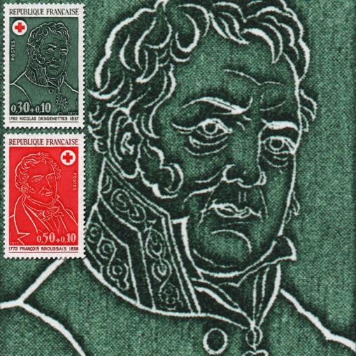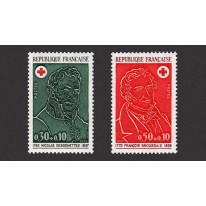 Na znaczkach widnieją portrety dwóch lekarzy, kolejno: