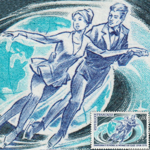 Znaczek upamiętniający mistrzostwa świata w łyżwiarstwie figurowym, które odbyły się w Lyon.