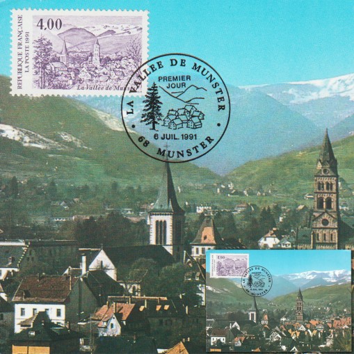 Na znaczku widnieje miejscowość Munster w północno-wschodniej Francji w dolinie pasma górskiego Wogezów. Słynie ona z produkcji sera munster.