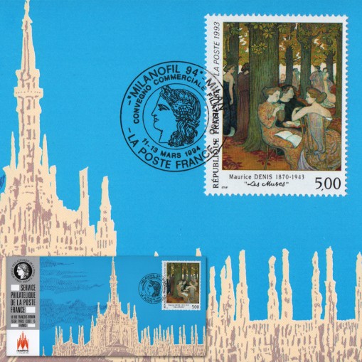 Na wydanym rok wcześniej znaczku upamiętniającym 50. rocznicę śmierci malarza nazwiskiem Maurice Denis widnieje jego obraz zatytułowany "Muzy".