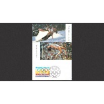 Na znaczku widnieją pierścienie olimpijskie, na karcie zaś przedstawiono narciarstwo i skok wzwyż.