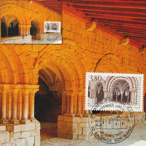 Na znaczku i karcie widnieje sala kolumnowa w opactwie cysterskim w miejscowości Flaran założonym w roku 1151.