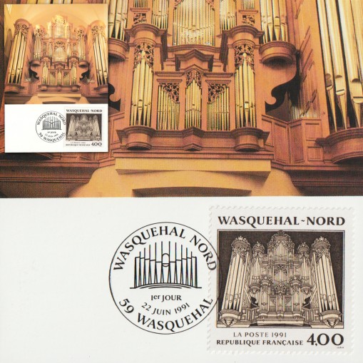 Na znaczku i karcie widnieją organy w kościele świętego Mikołaja w Wasquehal w północnej Francji.