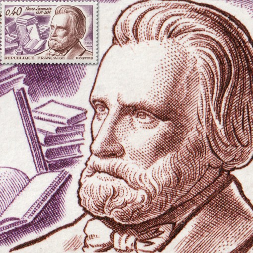 Znaczek upamiętniający francuskiego pisarza, leksykografa i wydawcę Pierre Larousse’a.