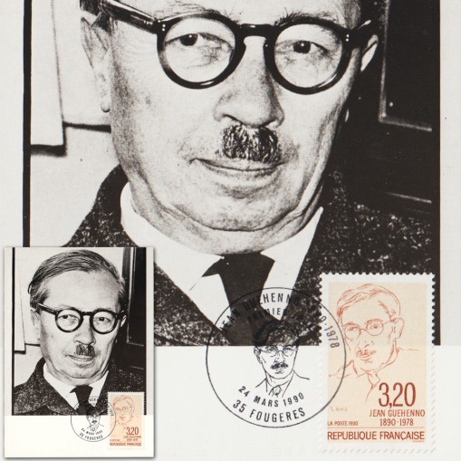 Znaczek na karcie maksimum upamiętniający setną rocznicę urodzin pisarza francuskiego nazwiskiem Jean Guéhenno.