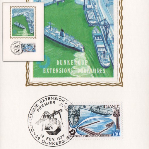 Znaczek na karcie maksimum upamiętniający rozbudowę portu w Dunkierce.