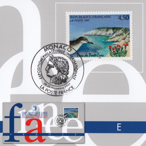 Znaczek na okolicznościowej karcie maksimum promującej pocztę francuską na międzynarodowej wystawie filatelistycznej w Monako.