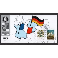 Znaczki na okolicznościowej karcie maksimum promującej pocztę francuską na francusko-niemieckiej wystawie filatelistycznej w Traunreut.