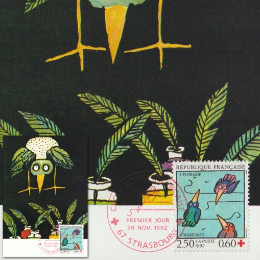 Na znaczku i bloku widnieją rysunki ptaków rysownika i karykaturzysty Tomiego Ungerera.