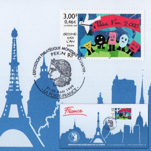 Znaczek na okolicznościowej karcie maksimum promującej pocztę francuską na międzynarodowej wystawie filatelistycznej China'99 w Pekinie.