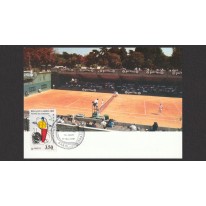 Znaczek na karcie maksimum upamiętniający stulecie istnienia French Open – międzynarodowych mistrzostw Francji w tenisie, jednego z czterech turniejów zaliczanych do Wielkiego Szlema rozgrywanego w Paryżu na kortach imienia Rolanda Garrosa na przełomie maja i czerwca.