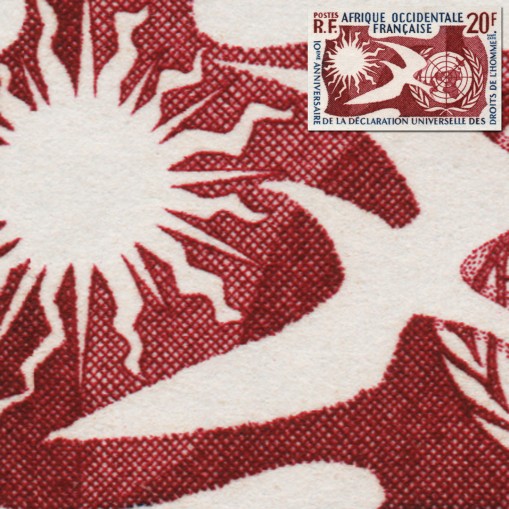 Znaczek wydany z okazji 10. rocznicy powszechnej deklaracji praw człowieka, uchwalonej przez Organizację Narodów Zjednoczonych (ONZ).