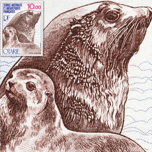 Na znaczku przedstawiono kotika antarktycznego, nazywanego też futrzastą foką Kerguelena (ponieważ występuje na Wyspach Kerguelena).
