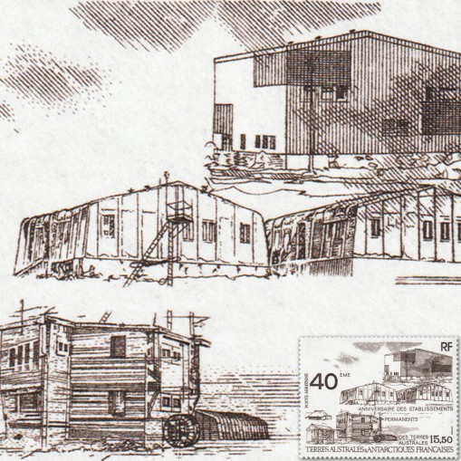 Znaczek wydany z okazji 40. rocznicy istnienia na tych obszarach stałych baz naukowych.