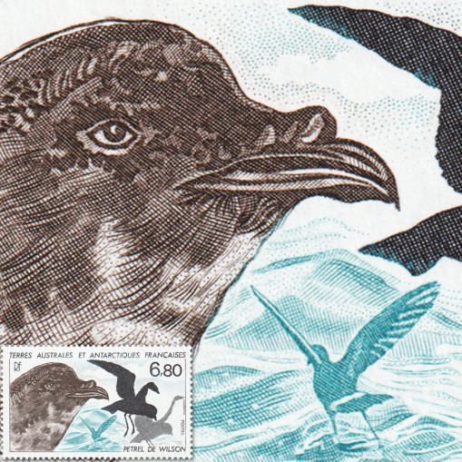 Na znaczku przedstawiono oceannika żółtopłetwego (inne nazwy to nawałnik żółtopłetwy lub nawałnik Wilsona) - gatunek niewielkiego ptaka oceanicznego z rodziny oceanników. Zamieszkuje on wody wokół Antarktydy. Zimuje w okolicach równika, pojawiając się wówczas na półkuli północnej. W Polsce obserwowany wyjątkowo.