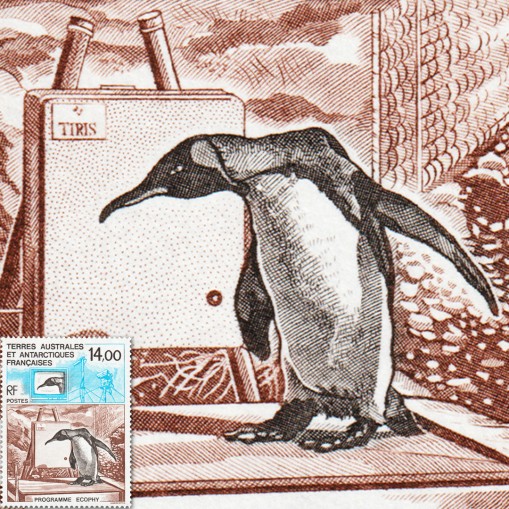 Na znaczku przedstawiono pingwina cesarskiego na platformie, podczas „pozowania" do jednego z ujęć programu telewizyjnego. Niewątpliwie jedyny w swoim rodzaju projekt waloru filatelistycznego.