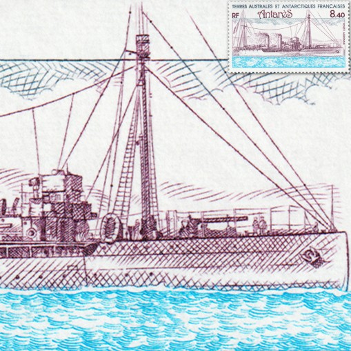 Na znaczku przedstawiono statek wysyłkowy „Antarès" - mały statek towarowy, który był także używany do przewożenia przesyłek pocztowych z portu do portu.