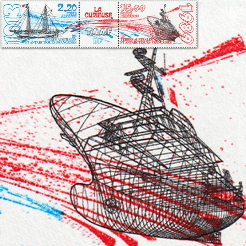 Na znaczkach przedstawiono dwie jednostki pływające o tej samej nazwie „La Curieuse": szkuner z 1913 roku oraz nowoczesny statek badawczy.