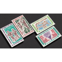 Znaczki upamiętniające Igrzyska Olimpijskie w Monachium. Na znaczkach widnieją: