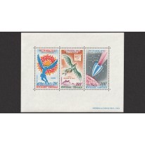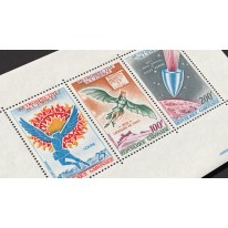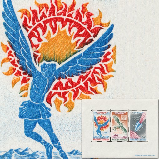 Na znaczkach przedstawiono historię lotnictwa: od Ikara, bohatera z mitologii greckiej, który za pomocą własnoręcznie skonstruowanych skrzydeł próbował wzbić się w powietrze, poprzez projekt skrzydeł autorstwa Leonarda da Vinci, aż po rakietę projektu Julesa Verne’a zbliżającą się do Księżyca.