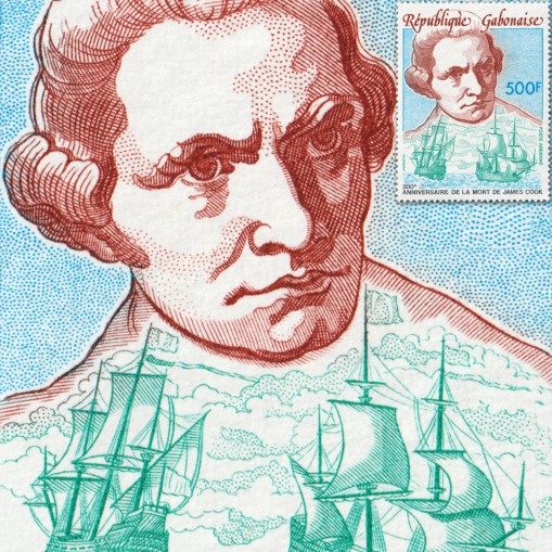 Znaczek upamiętniający dwustulecie śmierci Jamesa Cooka, angielskiego żeglarza i odkrywcy, kartografa, astronoma.