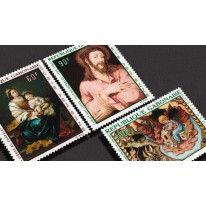 Na znaczkach widnieją reprodukcje malarstwa o tematyce religijnej, kolejno: