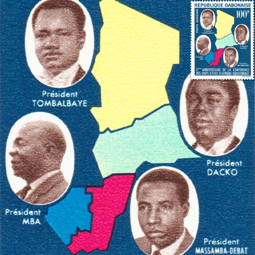 Na znaczku widnieją głowy państw Afryki Równikowej: Czadu, Konga, Gabonu oraz Republiki Środkowoafrykańskiej, obok konturów ich krajów na mapie.
