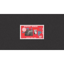 Na znaczku przedstawiono naturalny reaktor jądrowy - złoże rud uranowych w Oklo, w którym wykryto wiele stref będących w przeszłości miejscem naturalnych łańcuchowych reakcji jądrowych.