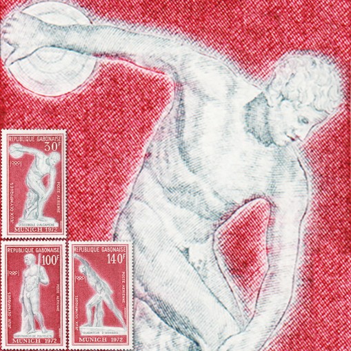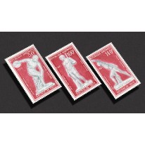 Na znaczkach przedstawiono starożytne greckie rzeźby sportowców: dyskobola, włócznika oraz szermierza.