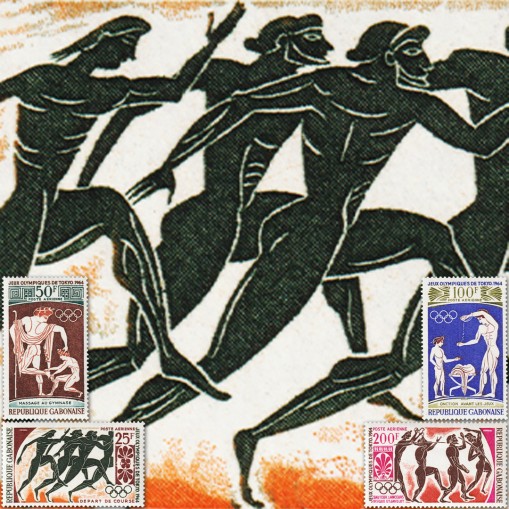 Na znaczkach widnieją przedstawienia zawodników ze starożytnej Grecji. Nie ukazują one - jak zazwyczaj - zawodników w akcji, lecz w czasie przygotowań do współzawodnictwa: biegu dla zakładu, masażu stóp gimnastyka, oliwienia ciała oraz treningu oszczepników.