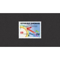 Na znaczku przedstawiono symbolicznie wpływ telekomunikacji na życie wszystkich ludzi. Kolory tęczy symbolizują dla Afrykańczyków wszystkie rasy świata. Napis na znaczku „Télécommunications et sécurité de la vie humaine" oznacza „telekomunikacja i bezpieczeństwo życia".