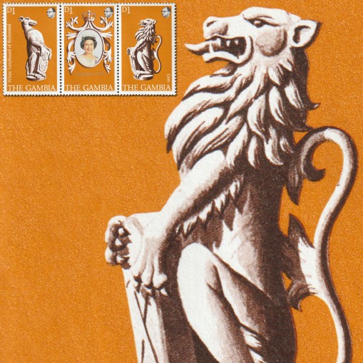 Na znaczkach widnieją kolejno: biały chart z herbu rodu Richmond (rzeźba ta jest jedną z dziesięciu figur heraldycznych reprezentujących genealogię Elżbiety II wykonanych na okazję koronacji monarchini), portret Elżbiety II oraz lew.