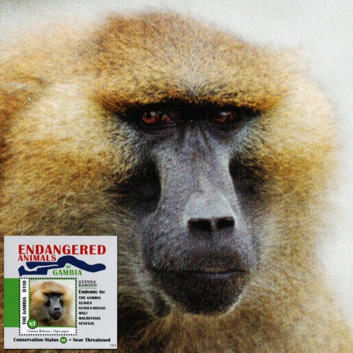 Znaczek w bloku, na którym widnieje pawian gwinejski.