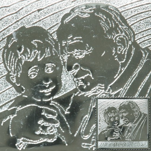 Znaczek wytłoczony został w srebrnym metalu. Na odwrocie posiada folię samoprzylepną.