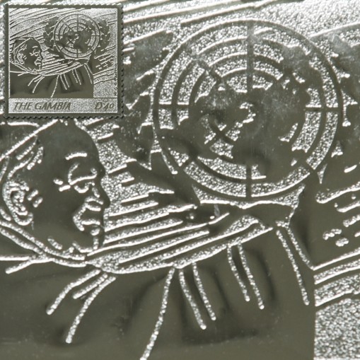 Znaczek wytłoczony został w srebrnym metalu. Na odwrocie posiada folię samoprzylepną.