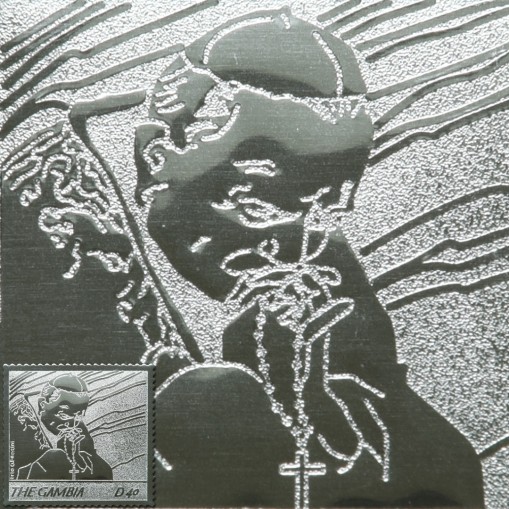 Srebrny znaczek upamiętniający śmierć papieża Jana Pawła II.