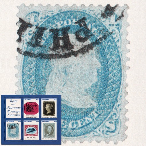 Na znaczkach w arkuszu przedstawiono słynne walory pocztowe, kolejno: