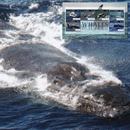Seria w arkuszu, na znaczkach której widnieją następujące gatunki waleni: