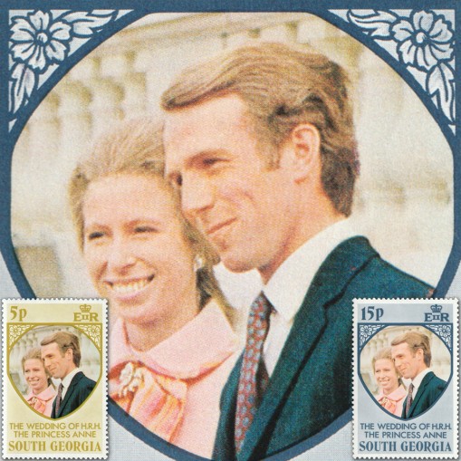 Znaczki upamiętniające ślub księżniczki Anny (córki królowej Elżbiety II) i Marka Phillipsa.